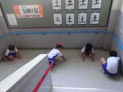 算数科の「時間と長さ」で,巻尺の使い方を学習しました。0の目盛りに気を付けて,色々なものの長さを調べていました。長さを測るうちに「巻尺を使うと,長いものや丸いものの長さが測れて,おもしろいな!」と巻尺の便利さに気が付くことができました。