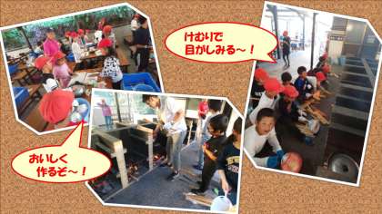 調理器具を用意したり,材料を切ったり,かまどに火をつけたり…,