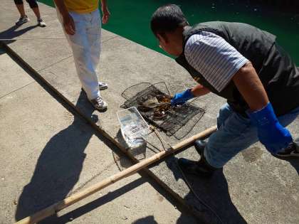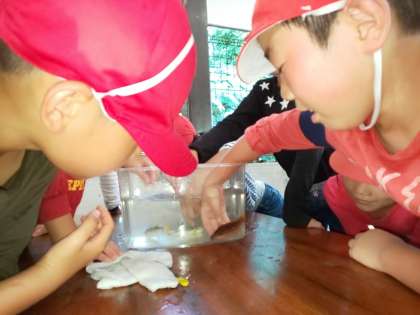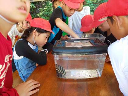 毒をもっていない魚は,水槽に入れて,触ってみました。