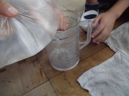 「うーん…,ビニール袋で1Lって,どのくらいかなぁ。」