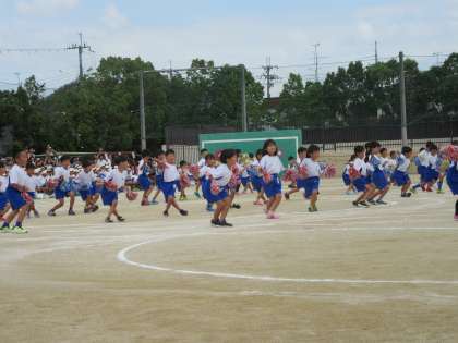 プログラム7番 1年生の団体演技「ぱっぱっぱっぱ かみカッパ」です。