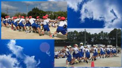 1年生から6年生まで,力を合わせて綱を引きます。