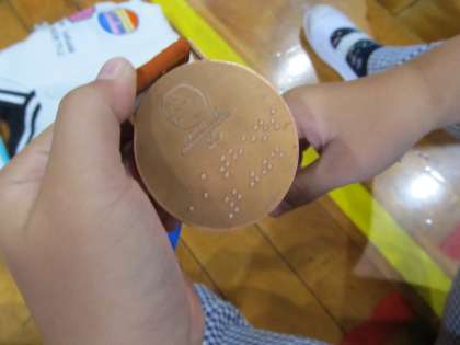 子どもたちは実際に銅メダルを触らせていただき,とても感動していました。