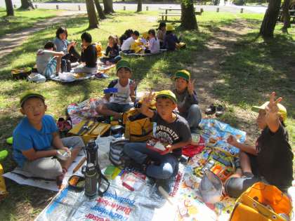 京都駅の中を通りながら,駅の様子を見ました。バスに乗り,京都御所に移動してから昼食をとりました。おいしいお弁当を食べ,元気いっぱいになっていました。