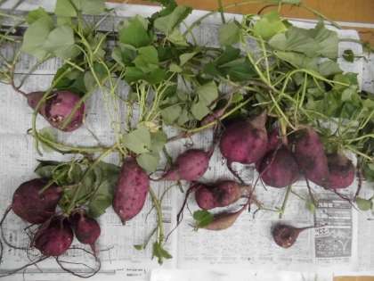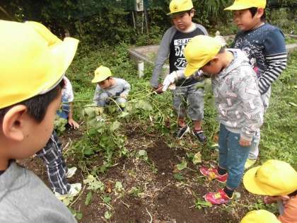 大空の畑で育てていたサツマイモをみんなで掘りました。小さい畑なので少しだけですが,きれいな紫色のサツマイモができました。みんなで調理をして,秋の収穫を祝いたいです。