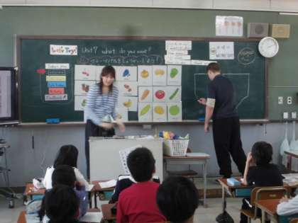 果物や野菜の言い方,欲しいものの尋ね方を学んでいます。