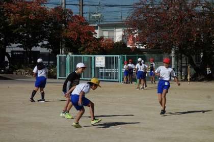秋晴れの気持ちのよい天気の中,ベースボールをしました。だんだんとルールもわかって,チームワークもよくなってきました。これからの成長が楽しみです。