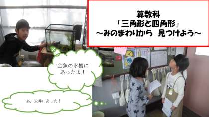 そして,身の回りには,どんな三角形・四角形があるかを探しました。