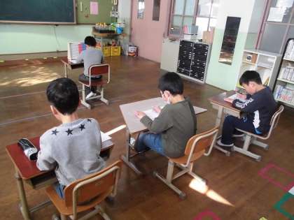 国語や算数は,グループに分かれて一人一人の課題学習に取り組んでいます。算数では,具体物を操作して問題を解いたり,計算の反復練習をしたりしています。みんな真剣な表情で頑張っています。