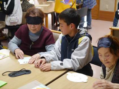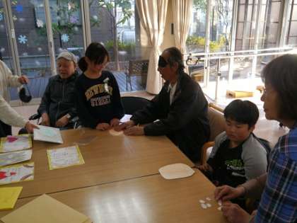福笑いでお年寄りの方とペアになって遊びました!!