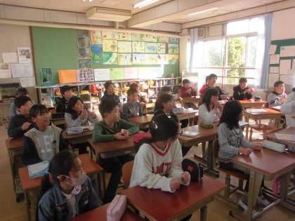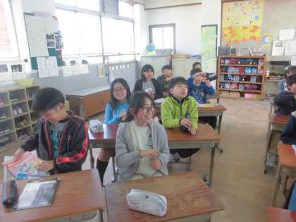 チャレンジタイムに,新しく習ったチャンツを歌いました。「on in under by」とジェスチャーをしてノリノリで歌っていました。