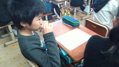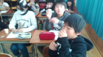 食の指導の時間に6年生は「だし」について学習しました。「香りはかつおぶしだけど,想像してた味とちがう!」「昆布の香りがする!」と,2種類のだしの香りや色を比べながらだしを味わいました。