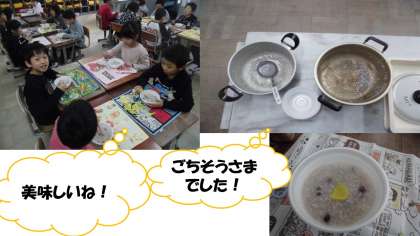 そして,女性会とPTAの皆様が作ってくださった小豆粥を美味しくいただきました。