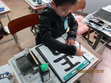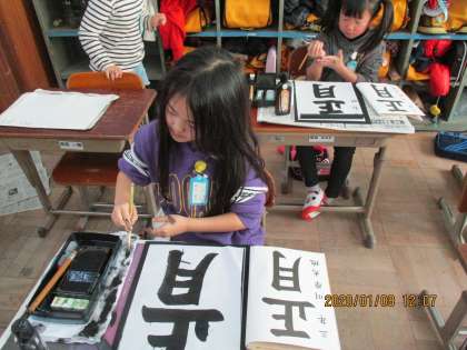 「書初め」をしました。「書初め」とは,お正月行事の一つで,1年の抱負や字の上達を祈願して行われる日本に昔からある伝統的な行事です。その話をしたからか,いつもよりも気合いを入れてピシッとした姿勢で筆を握っていた子どもたち。一人一人が願いを込めて書いた字を見て,満足そうにうなずく様子にとても微笑ましい気持ちになりました。