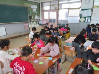 算数では,色画用紙の数を数えました。