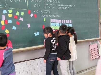 グループのみんなで協力して数を数えていました。