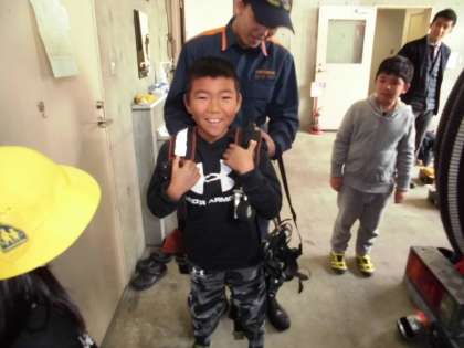その後は建物の中を見せてもらい,消防士の方達がどのように勤務しているかを教えてもらいました。「火事のとき以外は何をしているんだろう?」と疑問に思っていた子が多くいましたが,トレーニングルームや待機室など,出動する以外のときの過ごし方も教えてもらいました。