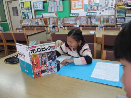 総合的な学習の時間では,今まで学習したことから,自分がもっと調べてみたいと思ったことをパソコンや図書室の本を使って調べています。