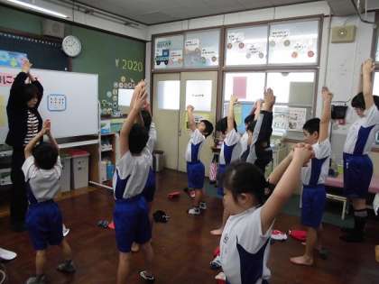 今年度最後の身体計測があり,はじめに養護教諭の先生から,姿勢についてのお話を聞きました。学習の時の姿勢は「グー・ペタ・ピン」を合言葉に,実際にやって確かめました。最後に背筋を伸ばす「トウモロコシ体操」をみんなでしました。教室でもよい姿勢を意識していきたいです。