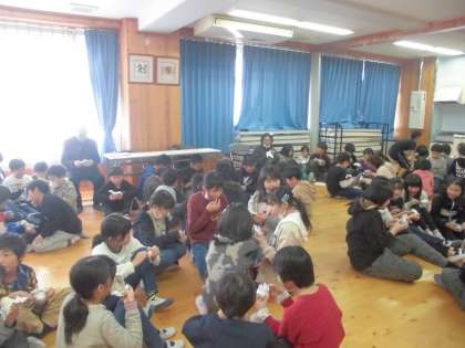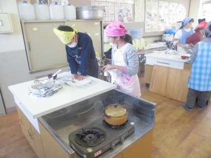 今日は,総合でお世話になった農家の方々にお礼を伝える「感謝の会」を開きました。2組は,収穫したお米を炊いてふるまってくれました。