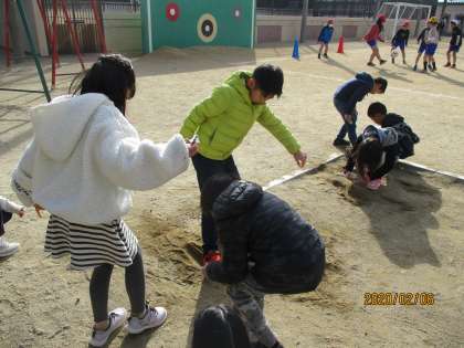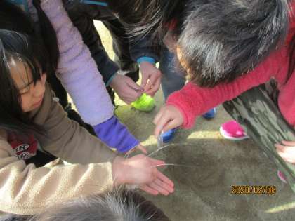理科で「じしゃくのひみつをしらべよう」の学習をしています。今日は砂場で砂鉄集めをしました。「砂の中に鉄のものなんてない!」と言っていた子どもたち。いざ砂場へ行き磁石を近付けると,たくさんの砂鉄が磁石に引き付けられることにびっくり!夢中になって砂鉄を集めていました。