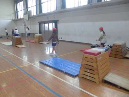 体育では,とび箱の学習をしています。けがをしないように,安全第一で取り組んでいます。今できる技をきれいにしたり,新しい技にチャレンジたり,各自めあてをもって頑張っています。