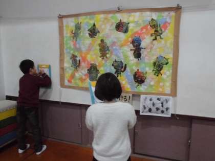 2月18・19日は,作品展です。2年生は「くしゃ くしゃ ぎゅ」と「わたしと生きもの」で制作した作品を展示しています。