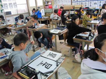 お手本をよく見ながら書くと,筆使いや線の太さなどにも気が付き,とてもすてきな「星」になりました。