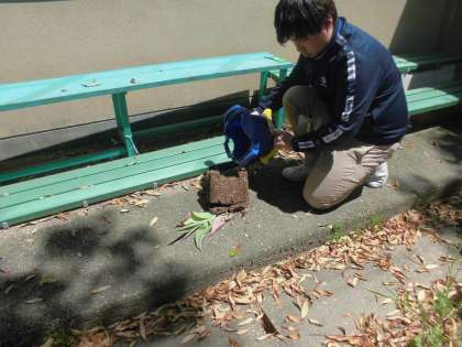みなさんがとうこうしたら,じぶんのうえきばちをひっくりかえしてもらいますよ。