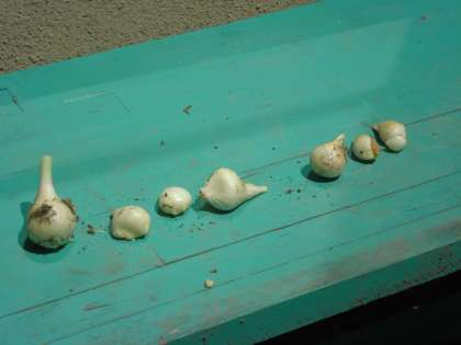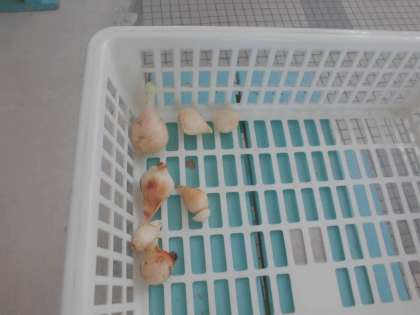 ほぐしたきゅうこんは,タマネギやニンニクににていますが,ぜったいにたべてはいけませんよ。