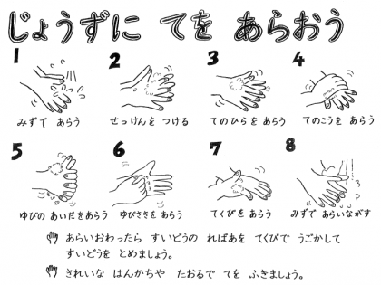みなさん,まい日正しく手あらいしていますか。