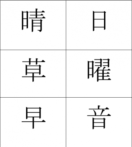 上のしゃしんの6つのかん字は,どのぶぶんが同じでしょうか??