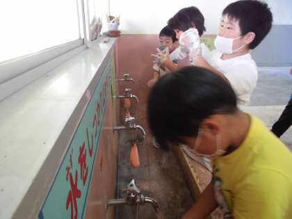 給食の準備も以前よりも手洗いと消毒を徹底し,感染拡大の予防を