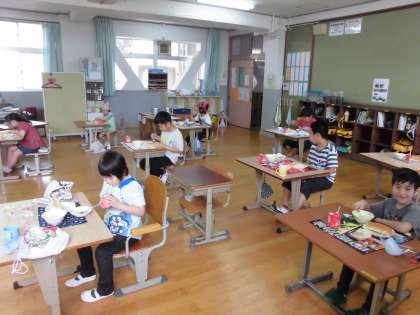1年生にとっては初めての給食で,朝からドキドキしていた子も
