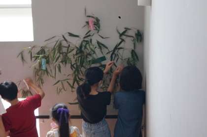児童会・掲示委員会が企画した七夕イベントの準備が着々と進んでいます。各クラスから助っ人も来てくれて,みんなで力を合わせて準備をしています。来週からスタートできるように,頑張っています。