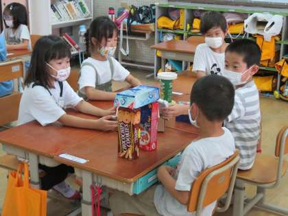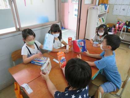 「ボールも〇〇の箱も 同じ形だから,なかまだね。」