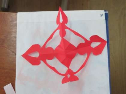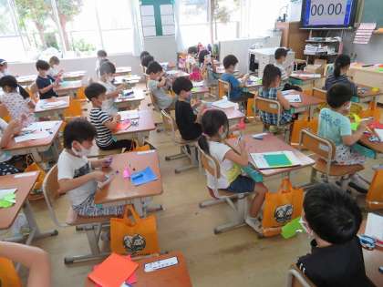 折り紙とはさみを使って,飾りを作りました。