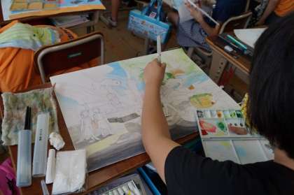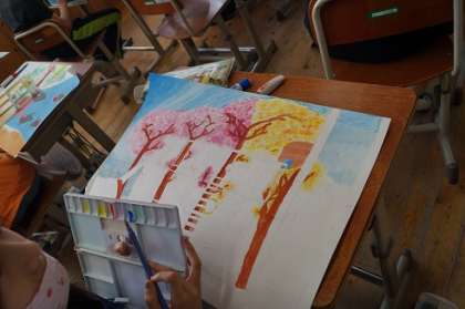 色のぬり方も上手になってきています。水を多めにして,優しい色合いの絵が仕上がってきました。