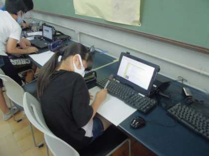 先週の総合的な学習の時間で,神川にはたくさんの田んぼがあるということに気付き,米がどのように作られるのかを調べることになりました。今週からお米についてコンピューターで調べています。調べていくうちに,分からない言葉が出てきたので,言葉の意味もどんどん調べていきました。