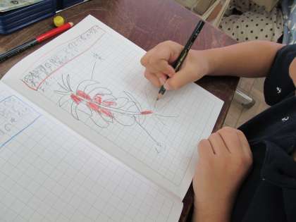 子どもたちは自分なりに考え,葉・くき・根の部分がどのように分かれているのかを絵をかいて予想していました。