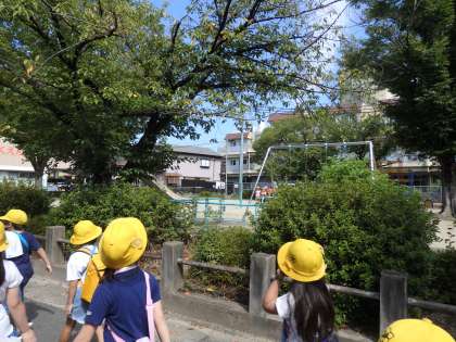 子どもたちは,自分たちの住んでいるまちにはどんなものがあるのか,興味津々で,目を輝かせながら歩いていました。