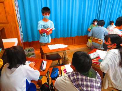 6年生の国語科で『ブックトーク』をしました。テーマを決めて選んだ本を友だちに分かりやすく伝えるために本を見せながら話したり,自分と本との関わりについて話したりしました。