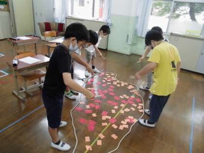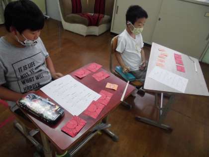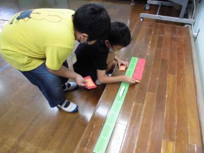 釣った魚の長さを考える学習をしました。クマノミは5センチ,