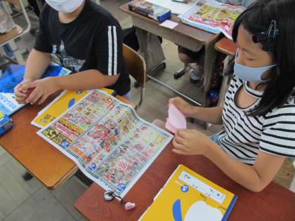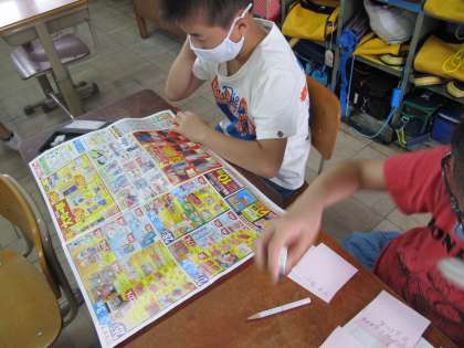 産地が書かれていることや値段のデザインの仕方に工夫があることに気が付き,スーパーマーケットの店内だけでなく,チラシにも工夫がされていることが分かりました。