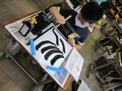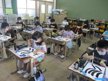 夏休み明け初めての書写の学習では,はらいに気を付けて「大」を書きました。左はらいと右はらいでは最後のはらい方が違い,右はらいは三角ができるように筆遣いに気を付けて書くことができました。