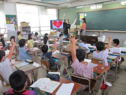 「Do you like〜?」で友だちに質問する学習もして,休み時間は早速それを使って会話を楽しんでいました。