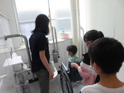 車いす体験〜トイレ内の移動〜(1・2組)