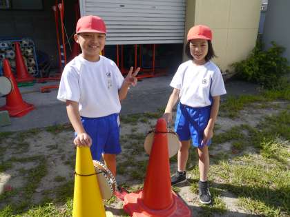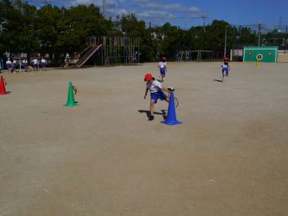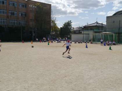 今日は,3・4組合同でリレーの練習を行いました。ゴールまでのタイムを短くできるように,「腕を前後にしっかり振ろう。」,「足をすばやくおろすようにしよう。」など,チームごとに意識するところを決めて,声を掛け合い練習をしていました。授業終了間際になっても,「あと一回やろう!!」,「まだまだやりたい!!」と元気いっぱいの子ども達でした。