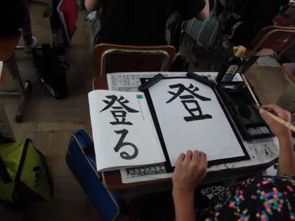 書写の学習で「登る」を書きました。