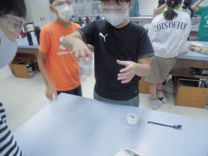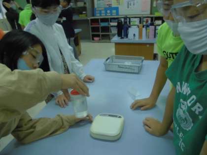 電子てんびん,薬さじ,薬包紙をはじめてつかって実験しました。